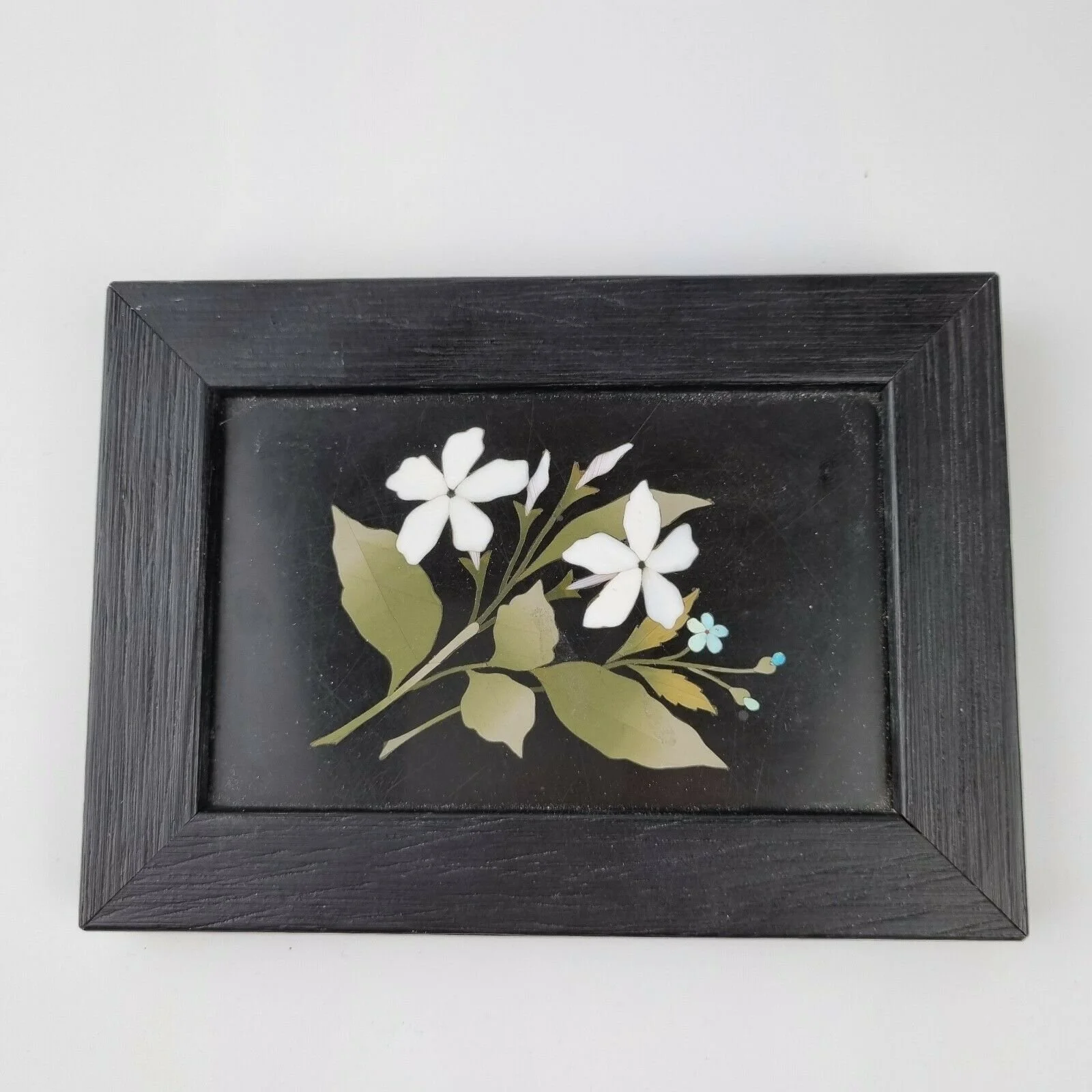 Antique 19th Century Grand Tour Pietra Dura Framed Plaque White Rose Flower